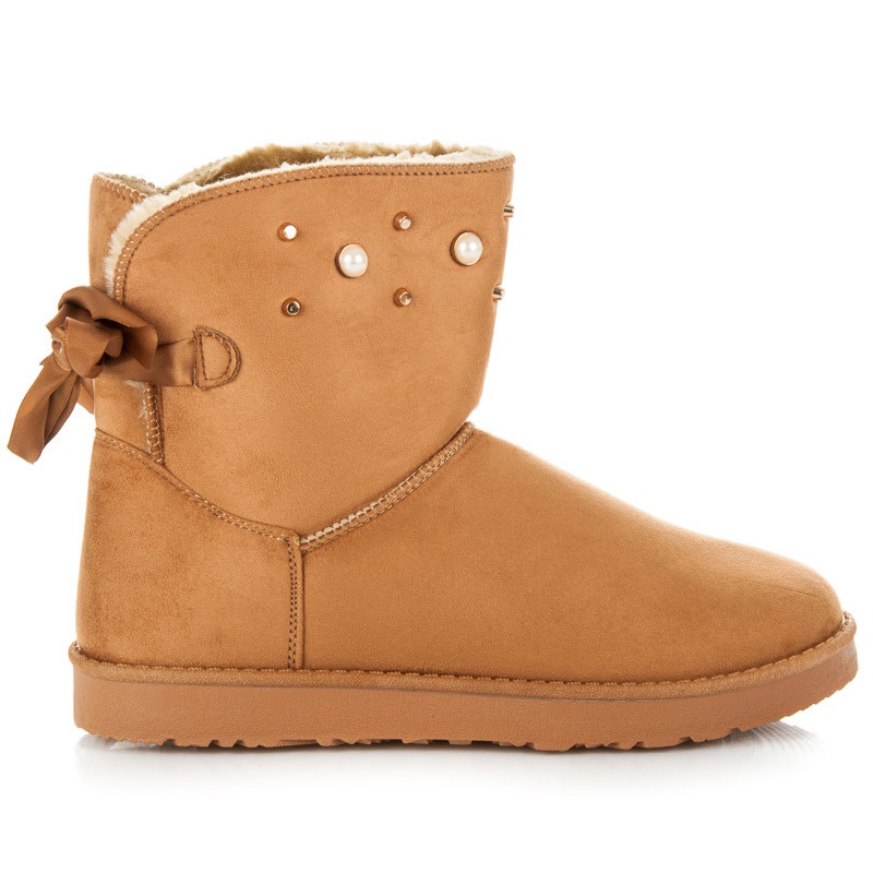 Mukluksille on ominaista kaunis ruskea sävy, jossa on herkkiä beige-aksentteja, jotka sopivat täydellisesti kaikkiin talvityyleihin. Lisäetuna ovat strassit ja helmet, jotka antavat niille ainutlaatuisen luonteen ja tekevät niistä erinomaisen valinnan muotia ja omaperäisyyttä arvostaville naisille.