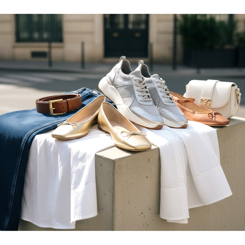 Toinen suuri ballerinatrendien kategoria vuodelle 2026 ovat metalliset mallit. Kultaiset, hopeiset ja kupariset balettiasunnot esiintyivät Pariisin ja Milanon näytöksissä tärkeimpänä tyylielementtinä. Suunnittelijat ovat osoittaneet, että metallisia kenkiä ei tarvitse varata erityistilaisuuksiin - oikealla yhdistelmällä ne näyttävät myös ilmiömäisiltä joka päivä.