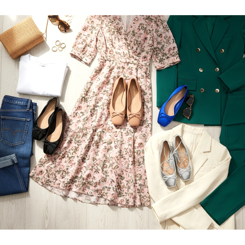 Kevätmekoksi - valitse nude tai vaalea beige balettiasunto kukkaisella midi-mekolla. Tämä yhdistelmä luo katkeamattoman pystyviivan, jolloin jalat näyttävät optisesti pidemmiltä. Intensiivisen värin (koboltti, smaragdi) mekolle valitse neutraalin väriset balettiasut, jotka eivät kilpaile vaatteidesi kanssa.