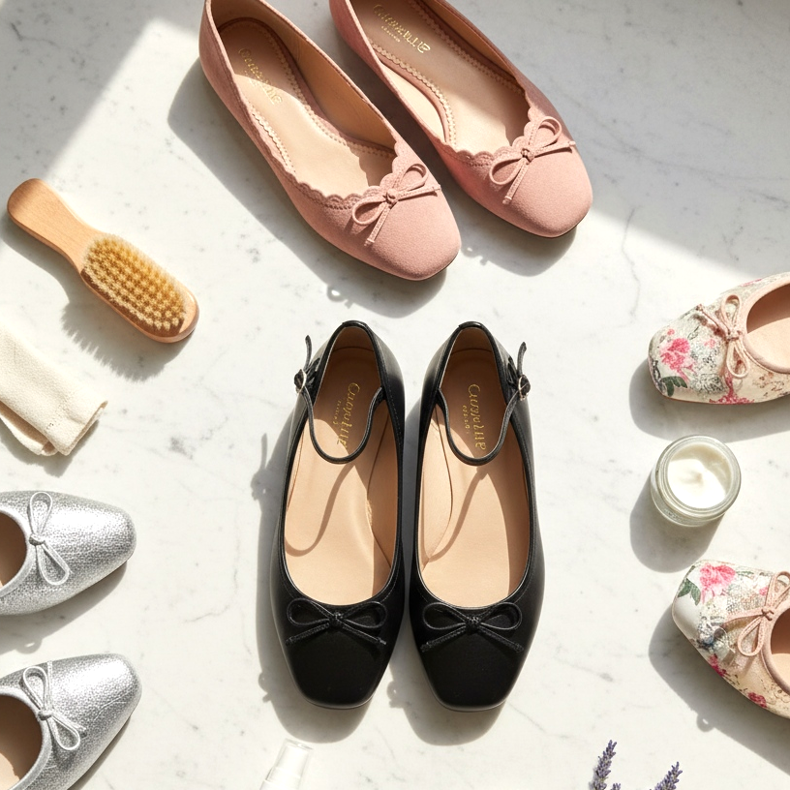 Hoito on yksinkertaista: säännöllinen puhdistus, nahan hoito kermalla tai mokkanahalla sopivalla siveltimellä ja vedeneristysaineen levittäminen ennen jokaista vuodenaikaa. Säilytä balettiasuntoja kenkäpuiden päällä tai täytä ne kankaalla säilyttääksesi muotonsa. Vieraile KeeShoesissa nähdäksesi kevään 2026 uusimmat balettiasunnot – rakastat varmasti jotain.