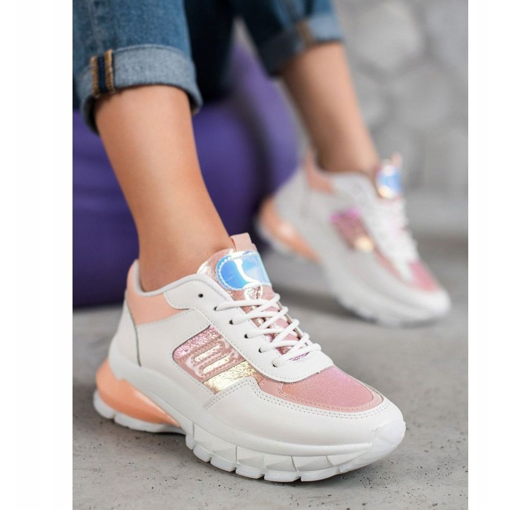 Yksityiskohdat: SHELOVET Muodikkaat Eco -nahka -lenkkarit valkoinen vaaleanpunainen monivärinen