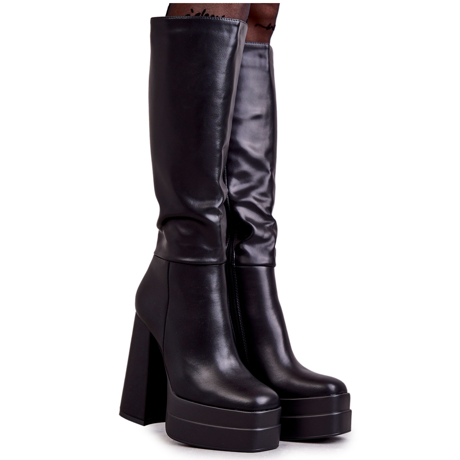 WS1 WS1 Muodikkaat Eco-nahkasaappaat paksuilla korkokengillä, musta Meggie