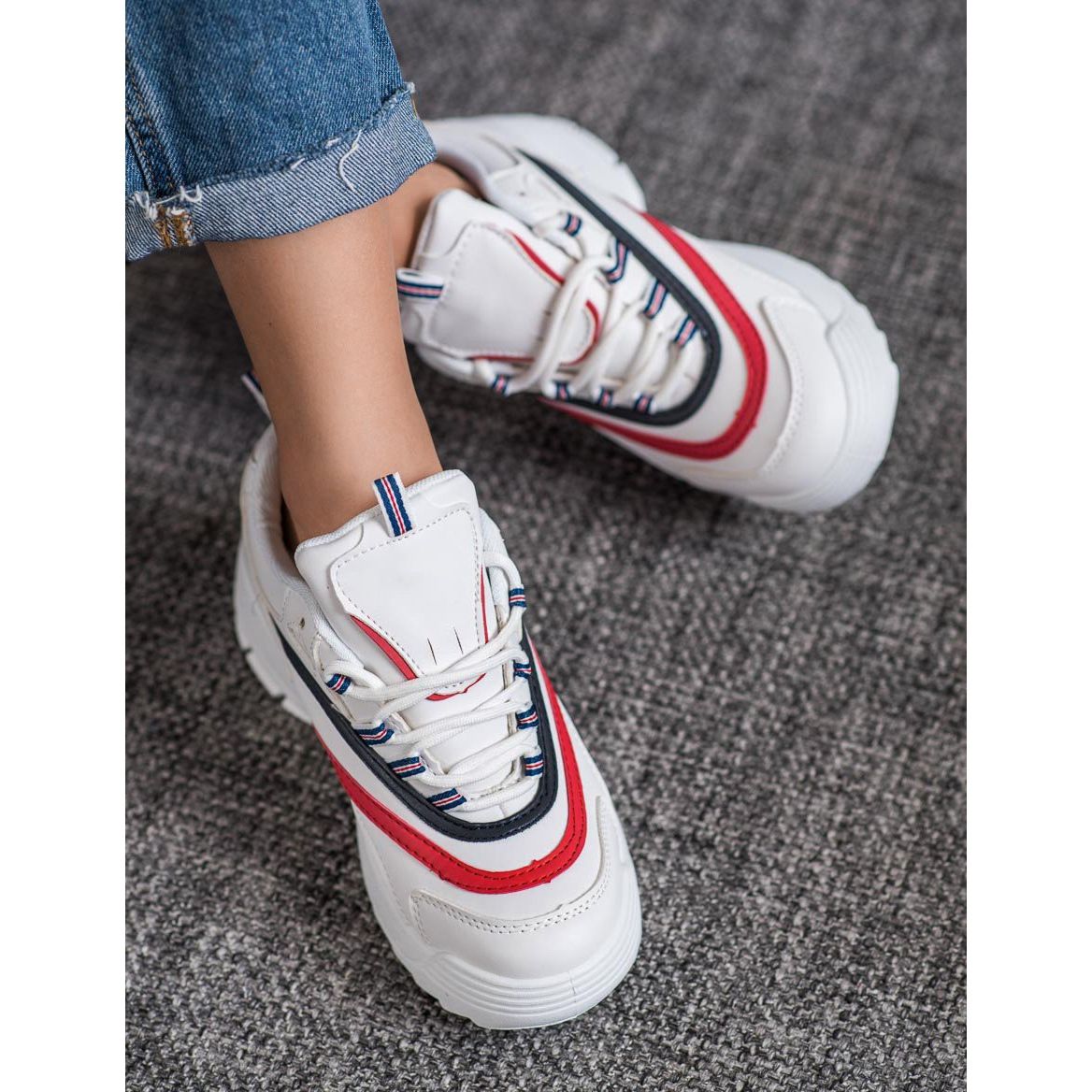Tutustu Weide Fashionable Platform -kenkiin klassisen valkoisena, josta tulee varmasti vaatekaappisi suosikkielementti. Nämä tyylikkäät ja urheilulliset lenkkarit erottuvat punaisista ja mustista vanteista, jotka lisäävät niihin luonnetta.