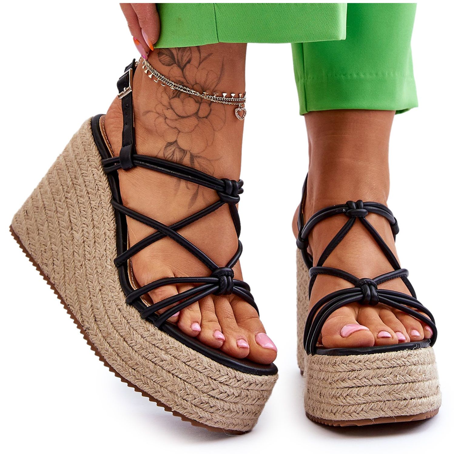 Yksityiskohdat: Muodikkaat kiila-sandaalit, joissa on punos musta Nessia