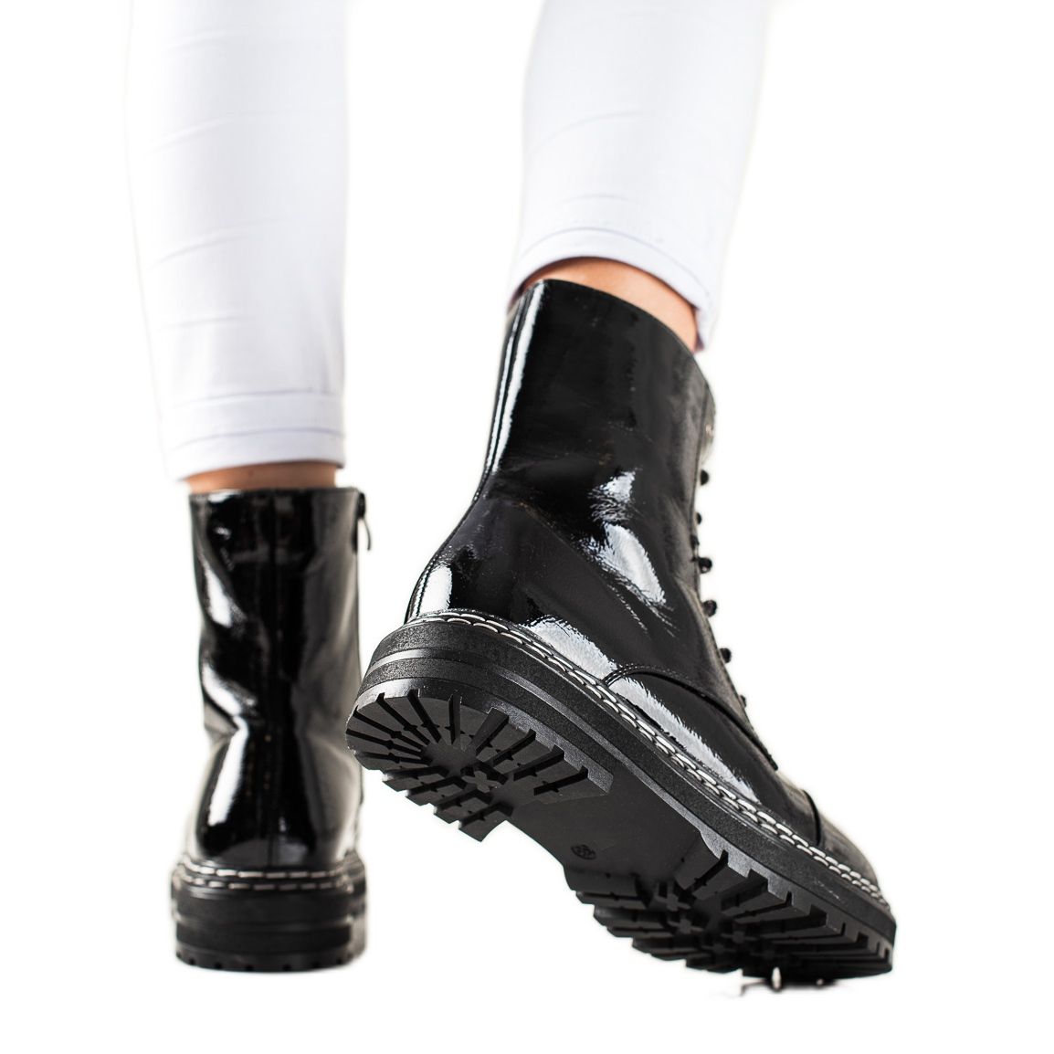 Yksityiskohdat: Muodikkaat lakatut saappaat musta