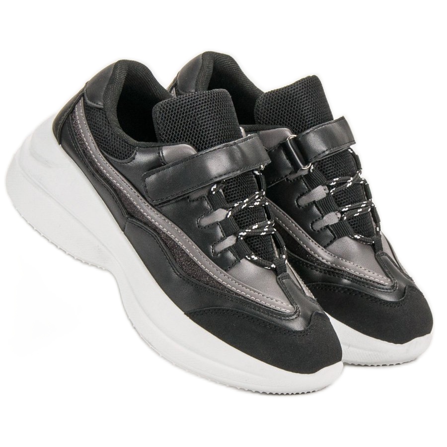 Mustat tennarit on varustettu nauhoilla ja tarranauhalla, mikä takaa täydellisen istuvuuden jalkaan ja vakauden käytön aikana. Käytettyjen materiaalien ansiosta niitä on helppo käyttää ympäri vuoden vuodenajasta riippumatta - keväästä kesään, syksyyn ja talveen.