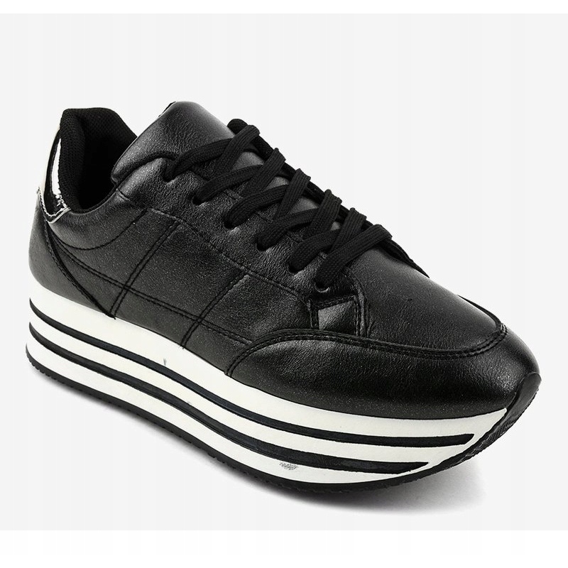 Mustat muodikkaat naisten urheilujalkineet 230-1 ovat ihanteellinen tarjous naisille, jotka arvostavat tyylin ja mukavuuden yhdistelmää liikunnan aikana. Nämä tyylikkäät urheilukengät erottuvat korkeammasta pohjasta, joka ei vain anna niille muodikkaat ulkoasua, vaan tekee niistä myös mukavia käyttää. 4 cm korkeat kiilat mahdollistavat hienovaraisen kasvun ja takaavat samalla vakauden ja mukavuuden jokaisessa vaiheessa.