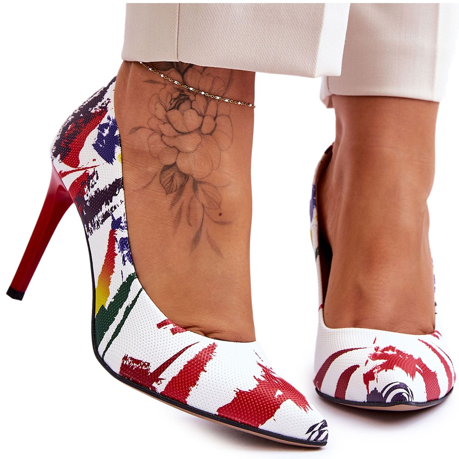 Lewski Shoes Muodikkaat nahkaiset korkeakorkokengät Leski-kengät 2659 valkoinen ja punainen
