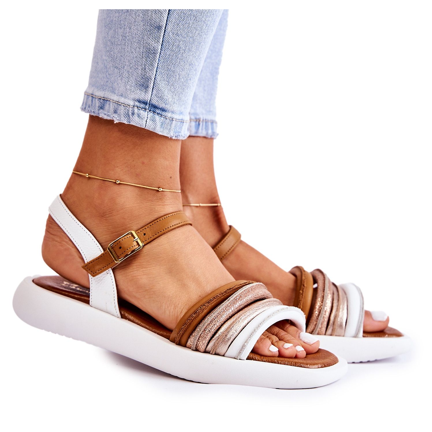 Maciejka Muodikkaat naisten nahkasandaalit Maciejka 05561-11 Valkoinen monivärinen