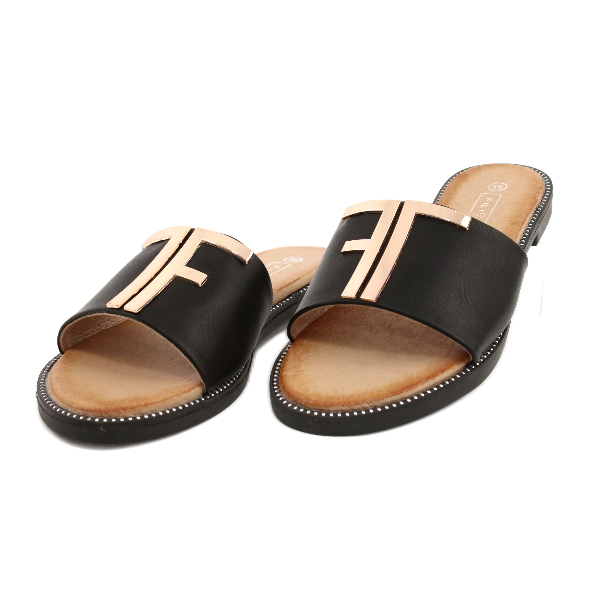 Filippo Filippo Muodikkaat naisten tohvelit musta ja kulta DK2103