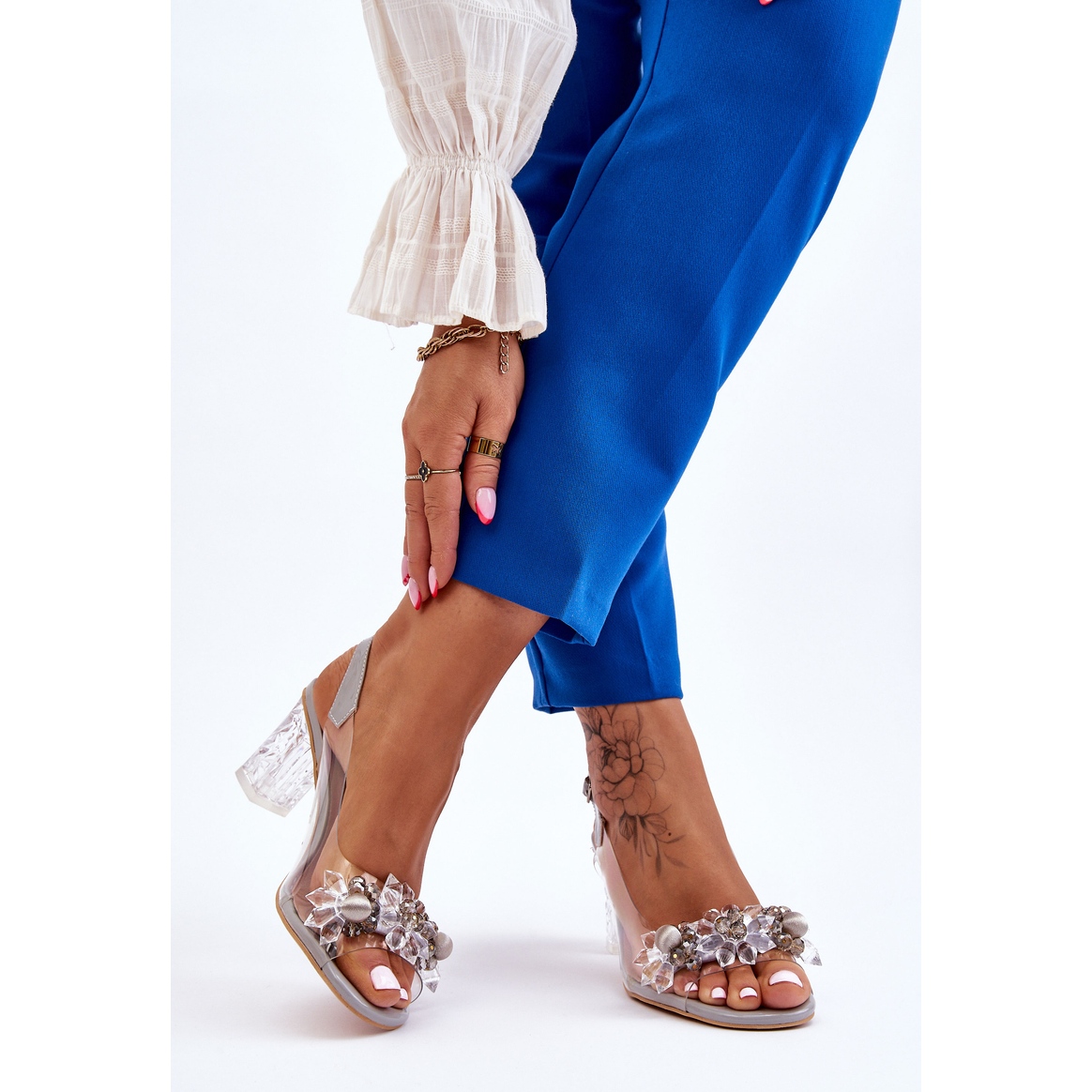 Kengät erottuu läpinäkyvästä kantapäästä 7 cm korkean lohkon muodossa, mikä antaa niille modernin ilmeen. Sandaalien etuosa on koristeltu tyylikkäillä kristallien ja helmien jäljitelmillä, jotka kiinnittävät huomiota ja antavat naisellista tyylikkyyttä. Luonnonnahasta valmistetun pehmeän, profiloidun pohjallisen ansiosta voit nauttia mukavasta käytöstä joka päivä.