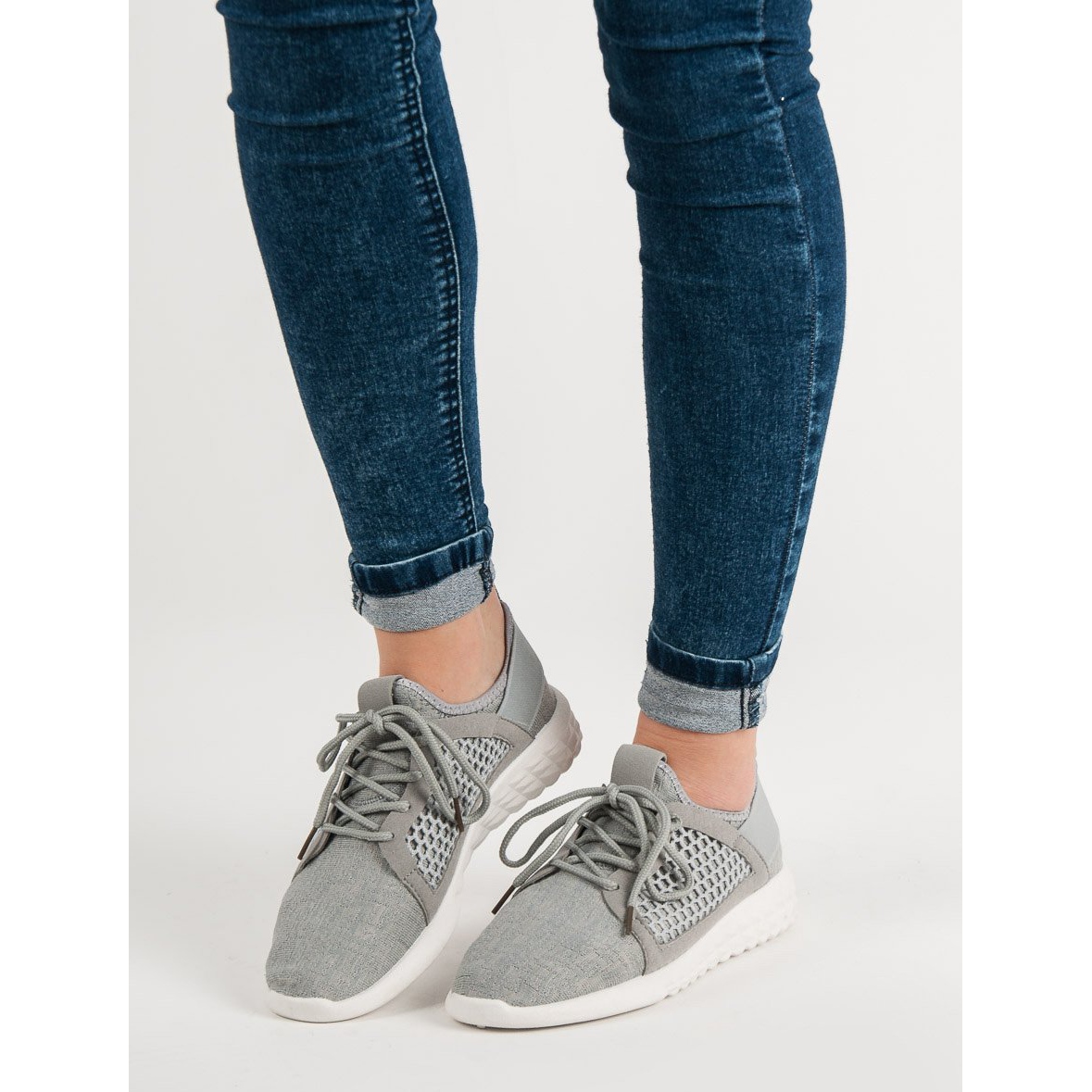 Muodikkaat harmaat tekstiilijalkineet ovat täydellinen valinta naisille, jotka arvostavat tyyliä ja mukavuutta joka päivä. Tässä mallissa yhdistyy ajaton muotoilu yleismaailmallisuuteen, minkä ansiosta se sopii täydellisesti eri tyyleihin - urheilusta rentoon.