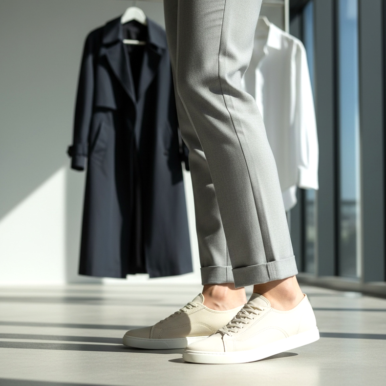 Lisäksi kapeat lenkkarit sopivat hyvin midi-mekkojen ja -hameiden kanssa – siksi niitä nähdään yhä useammin toimisto- ja puolimuodollisissa tyyleissä. Valkoisen, ekrun ja pastellisävyiset mallit ovat erityisen suosittuja tällä kaudella.