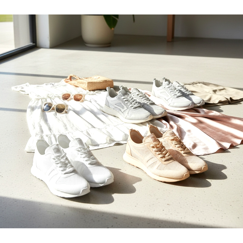 Yhdistä mesh-lenkkarit röyhelteisiin kesämekkoihin, pellavaisiin shortseihin tai satiiniseen hameeseen. Juuri kengän urheilullisen muodon ja vaatteiden naisellisen eleganssin välinen kontrasti luo magneettisen tyylijännityksen, joka on yksi koko kauden 2026 avaintrendeistä.