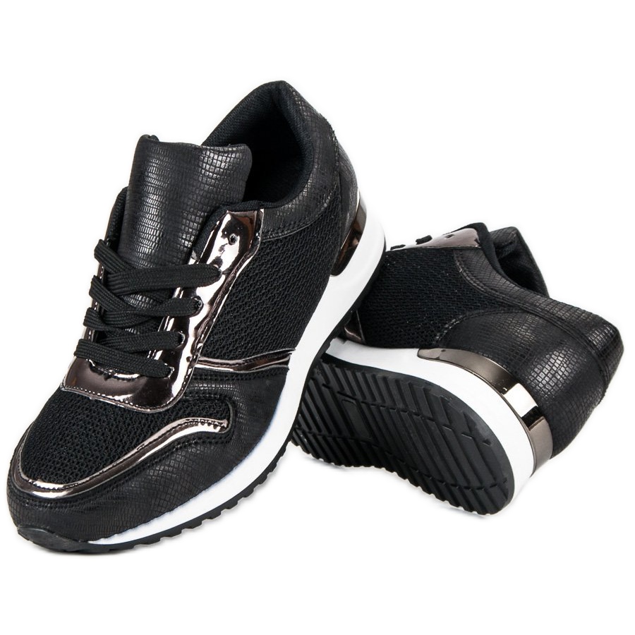 Löydä mukavuus ja tyyli muodikkailla mustilla urheilukengillä! Nämä naisten lenkkarit ovat yhdistelmä modernia muotoilua ja käytännöllisiä ratkaisuja, jotka täyttävät jokaisen aktiivisen naisen odotukset. Nämä kengät on valmistettu korkealaatuisesta tekstiilimateriaalista ja kullanvärisestä ekologisesta nahasta valmistettujen eleganttien sisäosien ansiosta nämä kengät houkuttelevat huomiota ja lisäävät luonnetta jokapäiväiseen tyyliin.