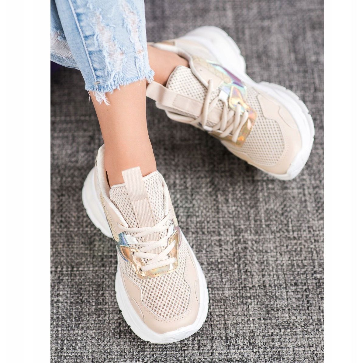 Tennarien päällinen on valmistettu nahkaa jäljittelevästä materiaalista ja ilmavasta verkkokankaasta, joka varmistaa erinomaisen ilmankierron, täydellinen kevääseen ja kesään. Klassinen nauhoitus kielen yläpuolella takaa tarkan istuvuuden jalkaan, ja sisäänrakennettu kantapää lisää vakautta ja mukavuutta.