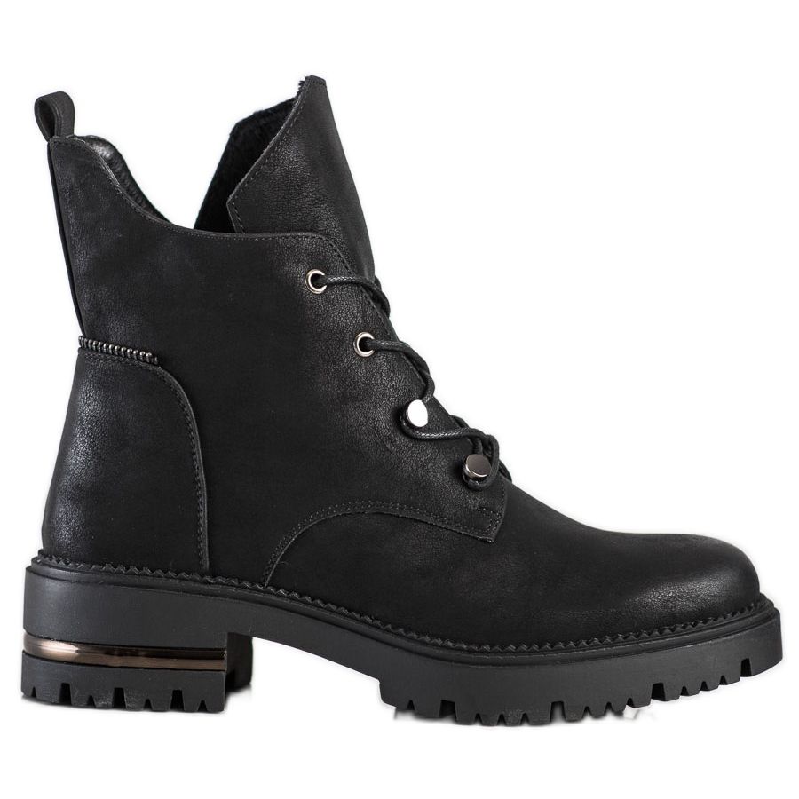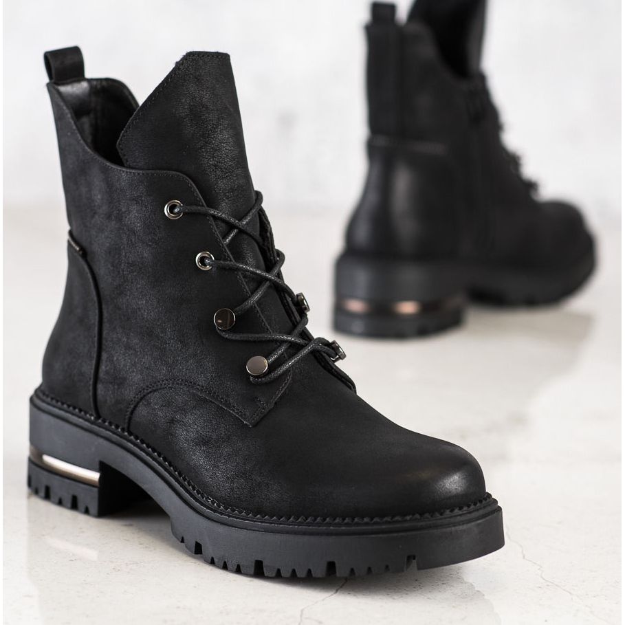 Saatavana muodikkaana, kuviottomana mustana värinä, ne ovat täydellinen lisä mihin tahansa vaatekaappiin. Yläkorkeus 15 cm ulottuu nilkan yläpuolelle, mikä lisää luonnetta. Muita etuja ovat käytännöllinen vetoketju ja nauhakiinnitykset, jotka mahdollistavat täydellisen istuvuuden jalkaan.