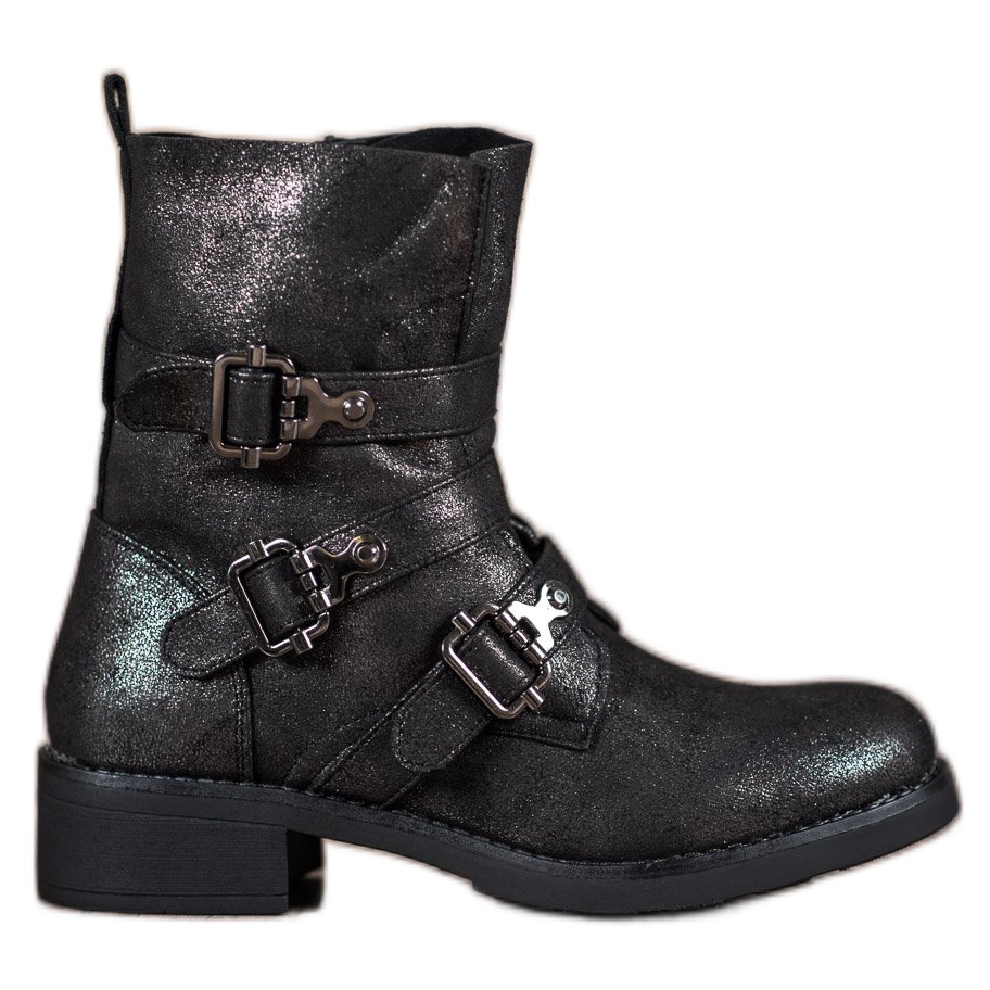 Bestelle-tuotemerkin mustat työhevoset ovat täydellinen valinta naisille, jotka haluavat lisätä ainutlaatuista luonnetta jokapäiväiseen tyyliinsä. Ekologisesta kimaltelevasta nahasta valmistetut kengät erottuvat joukosta alkuperäisellä designilla, joka kiinnittää huomiota ja korostaa yksilöllisyyttä. Vetoketju ja koristeelliset soljelliset olkaimet tekevät niistä paitsi houkuttelevia, myös toimivia.