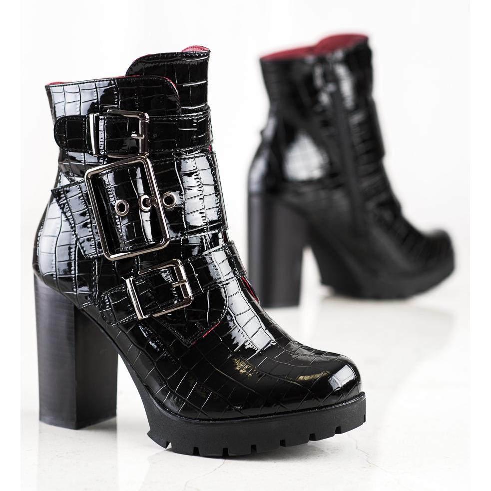 Erynn Fashion mustat korkeakorkoiset nilkkurit ovat täydellinen valinta jokaiselle tyylikkäälle naiselle, joka haluaa yhdistää tyylin ja mukavuuden. Laadukkaasta ekologisesta nahasta valmistetut patentoidut nilkkurit tekevät vaikutuksen minimalistisella mutta muodikkaalla muotoilullaan.