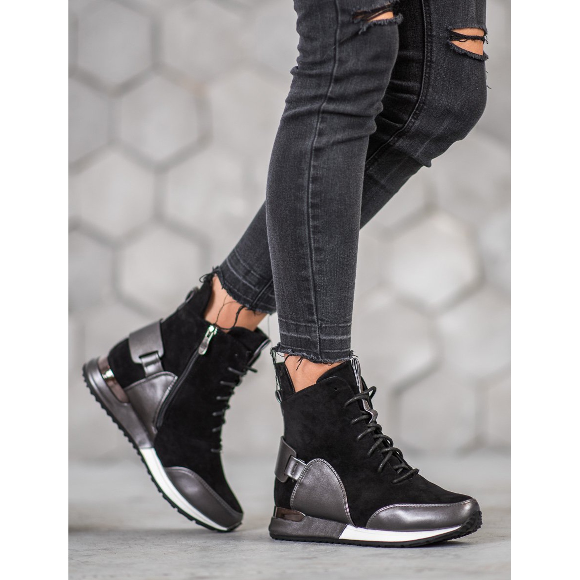 Fashion Goodin -lenkkarit ovat erinomainen valinta naisille, jotka etsivät mukavia ja tyylikkäitä arkikenkiä. Nämä modernit lenkkarit eleganteissa mustan ja hopean väreissä on valmistettu korkealaatuisimmista synteettisistä materiaaleista, mikä takaa kestävyyden ja käyttömukavuuden.
