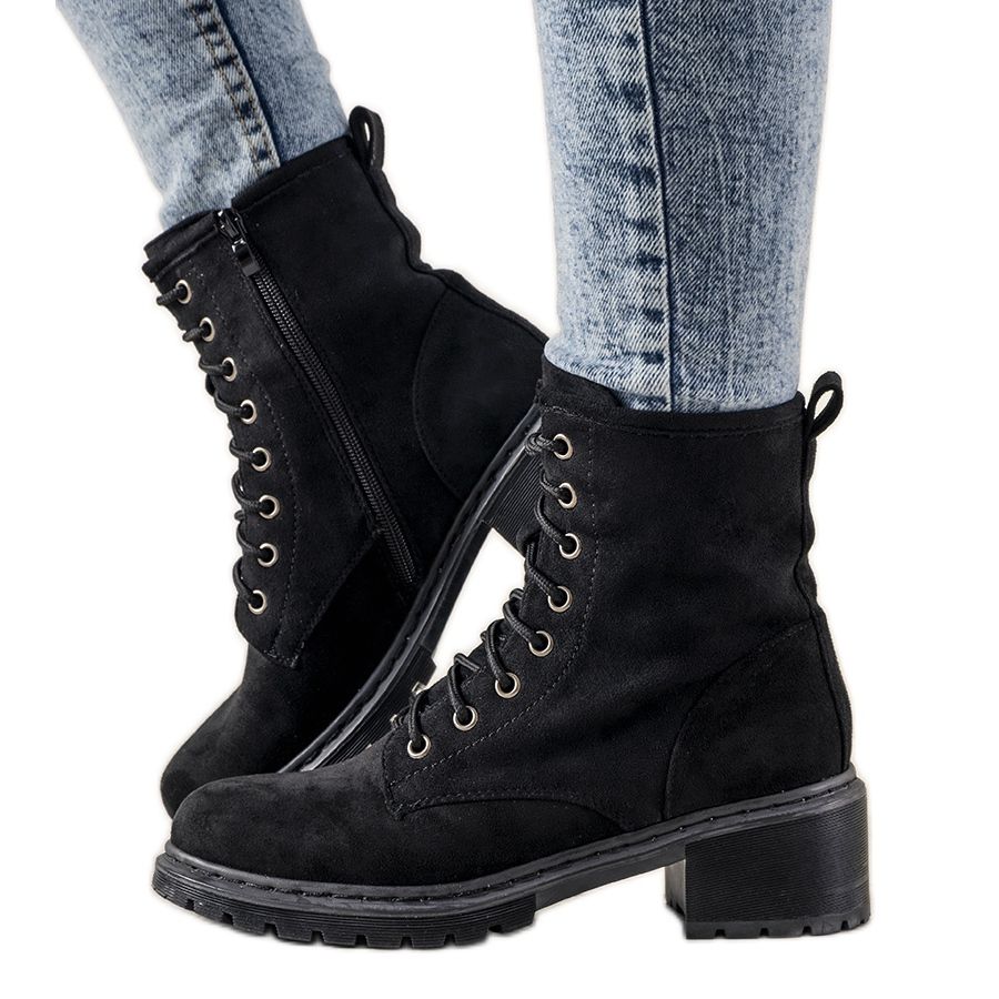 Tyylikkäillä ja yleismaailmallisilla on oltava saappaat, jotka on valmistettu mokkanan ekologisesta nahasta ajattomassa mustassa. Suunnittelu yhdistää muodikkaan, ansaanpohjaisen leikkauksen päivittäisen käytön mukavuuteen - se on ihanteellinen malli syksy- ja talvikaudella, jonka voit helposti sekoittaa moniin tyyleihin.