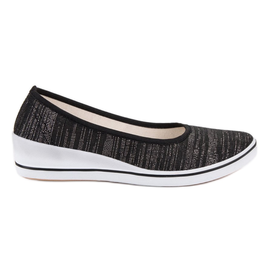Comer-brändin Black Wedge Ballerinat ovat täydellinen valinta naisille, jotka arvostavat mukavuutta ja eleganssia jokapäiväisessä elämässä. Näissä klassisissa slip-on kengissä on pyöreä kärki ja pehmeä, jäykistetty hakas, joka varmistaa mukavuuden myös pitkiä aikoja käytettäessä. Miellyttävän tuntuisesta punotusta kankaasta valmistetut ballerinakengät hohtavat hieman harmaalla ja lisäävät niihin hienovaraista charmia.