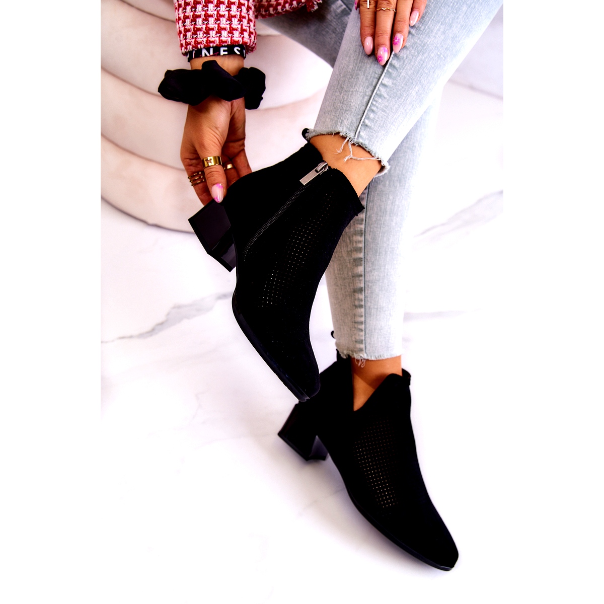 Yksityiskohdat: Vinceza Musta Carine harjakattoiset mokkanahkaiset saapikkaat, joissa on leikkaus
