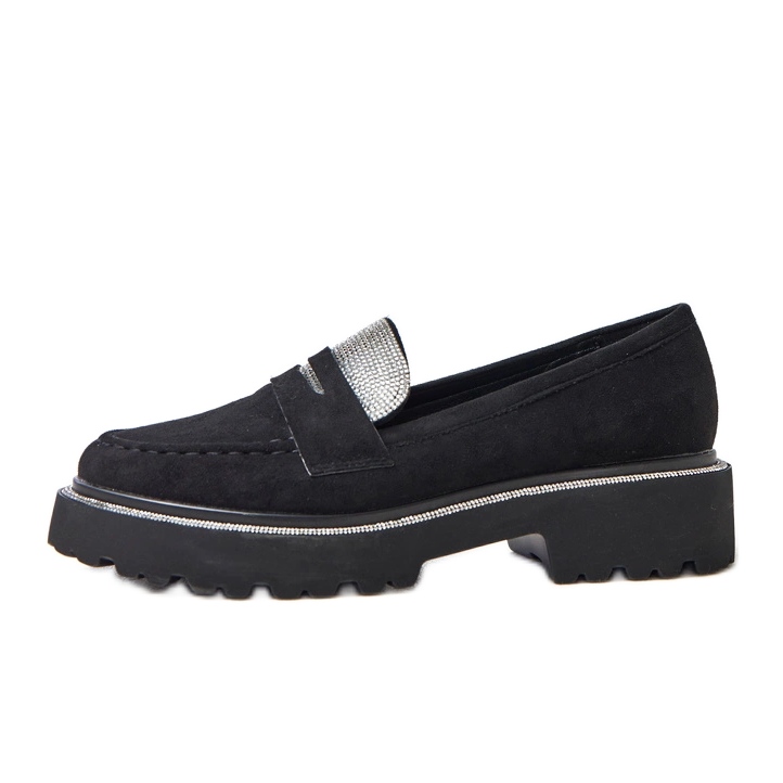 Inna marka Musta Ekozamszu -mokkasiinit, jotka on koristeltu kuutiometrillä zirkoniumoksidilla Klooren