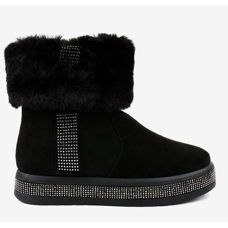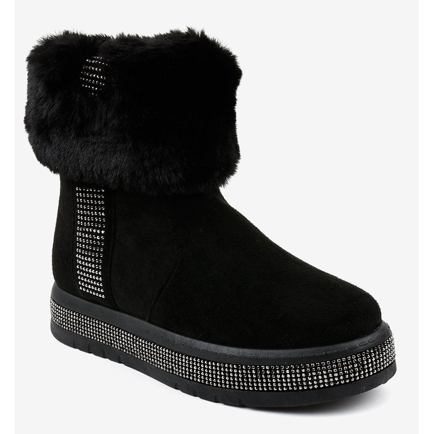 Kengän päälliset ulottuvat nilkan yläpuolelle, mikä antaa lisäsuojaa kylmää vastaan. Eristetyt sisätilat takaavat lämmön, ja viihtyisä turkisreunus lisää viehätystä. Avainelementit ovat koristeelliset strassit ja strassit, jotka lisäävät ripauksen kiiltoa ja omaperäisyyttä jokaiseen tyyliin.