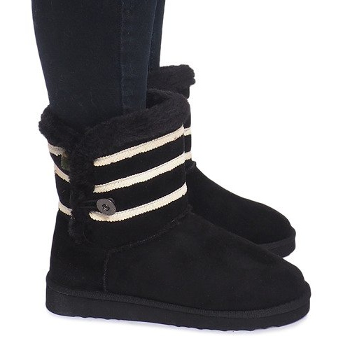 Napilla kiinnitetyt eskimo-saappaat erottuvat muodikkaasta muotoilusta, jota täydentävät koristeelliset valkoiset raidat ja turkisreunukset. Eristyksen ansiosta nämä jalkineet sopivat täydellisesti kylmiin päiviin tarjoten lämpöä ja käyttömukavuutta. Lisäksi niiden tyypillinen pyöreä kärki ja korkea, pohkeen puoliväliin asti ulottuva päällinen tekevät niistä paitsi käytännöllisiä myös tyylikkäitä.