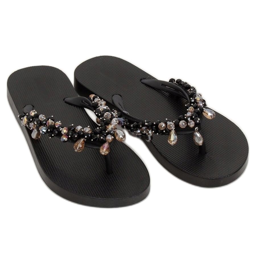 Inna marka Musta JH68 Mustat varvassandaalit helmillä