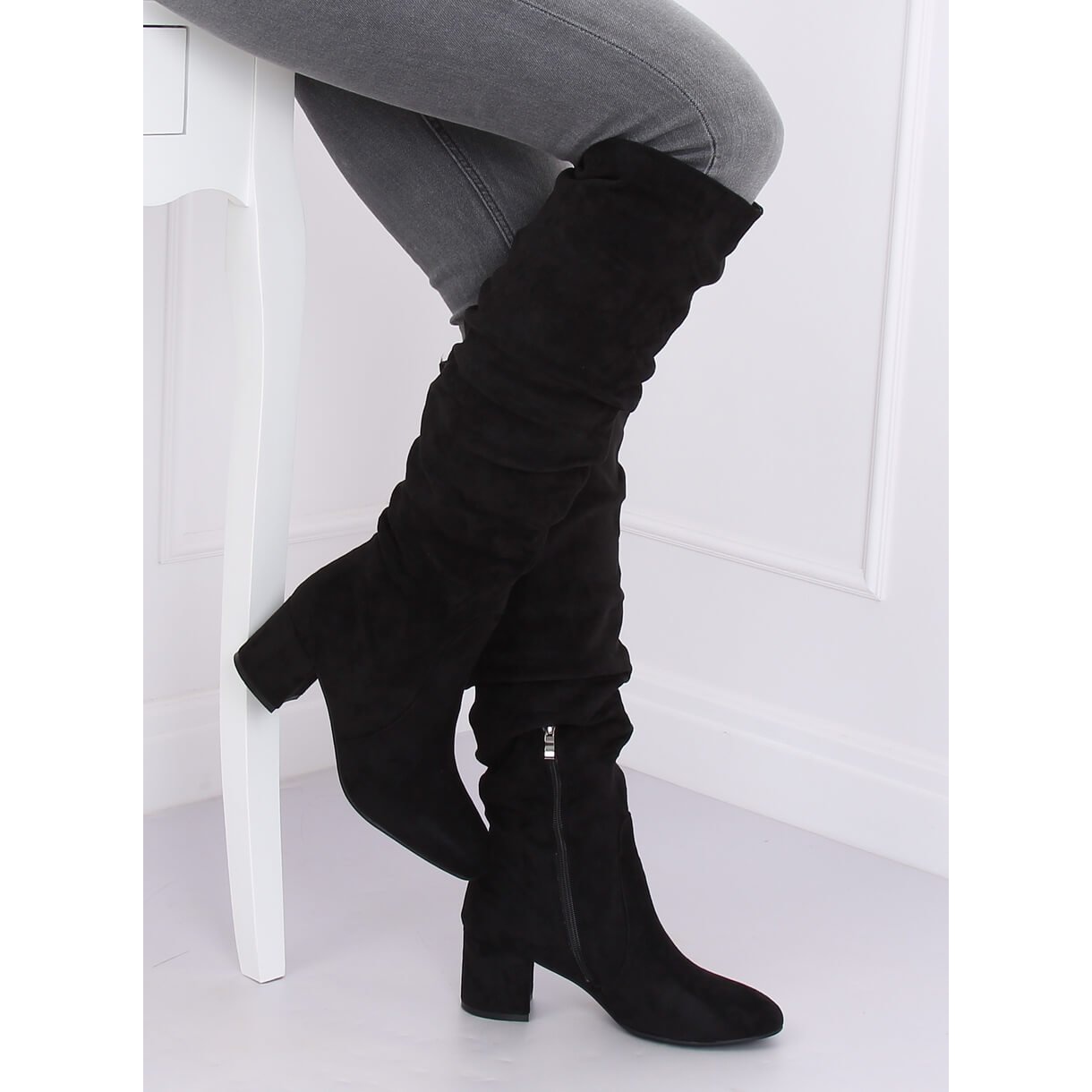 Syvän mustan väriset ajattomat saappaat sopivat täydellisesti monenlaiseen tyyliin arki-, liike- ja juhlatilaisuuksista. Vakaa 6 cm korkea kantapää takaa mukavuuden myös pitkän työpäivän aikana. Kengän leikkaus, jossa on röyhelöinen polvikorkea päällinen, lisää tyylikkyyttä mihin tahansa asuun, ja pyöreä kärki takaa jalkojen mukavuuden ja vapauden.