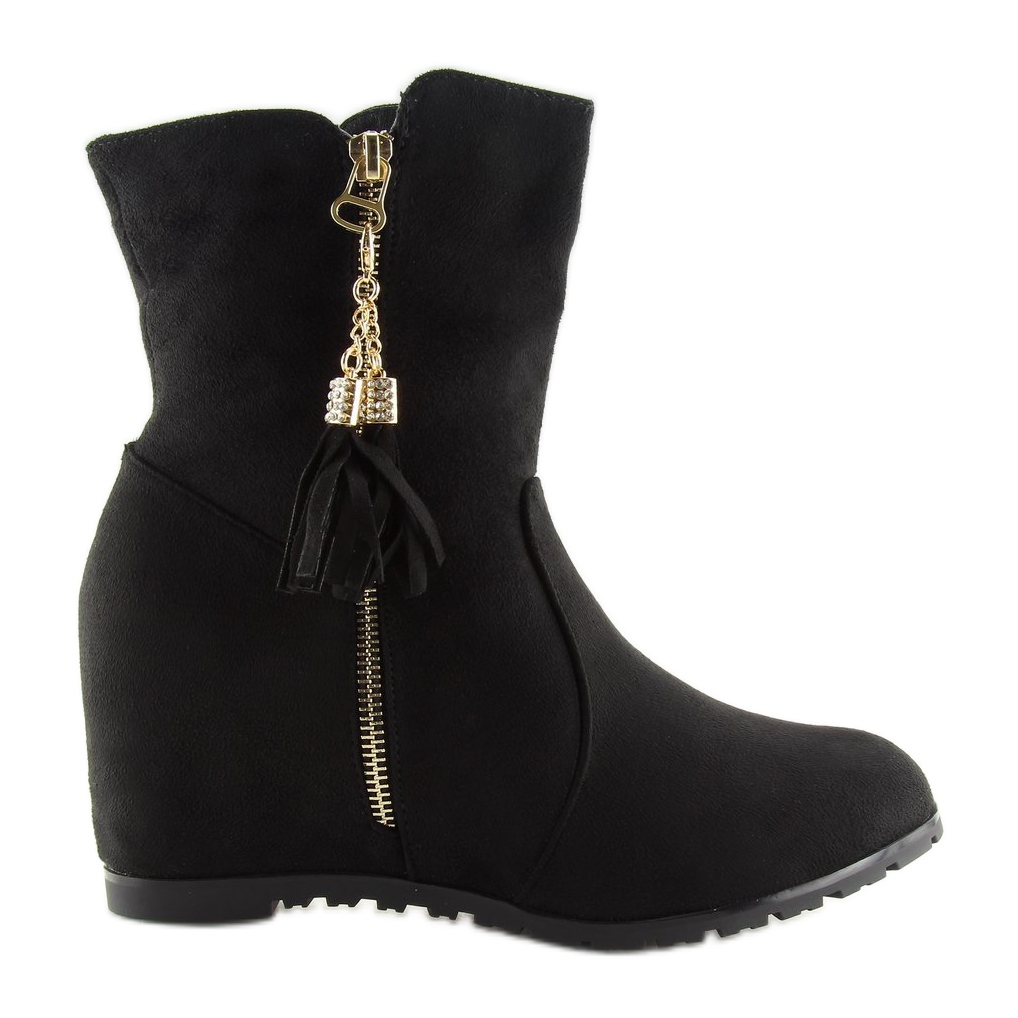 Näiden saappaiden erottuva piirre on korkea päällinen, jossa on koristeellinen kultainen vetoketju, joka antaa niille ainutlaatuisen luonteen. Lisäksi kaunis, vapaasti irrotettava riipus tekee tästä mallista entistäkin ainutlaatuisemman. Käytännön vetoketjun ansiosta ne on helppo pukea ja riisua, mikä tekee niistä erittäin toimivia.