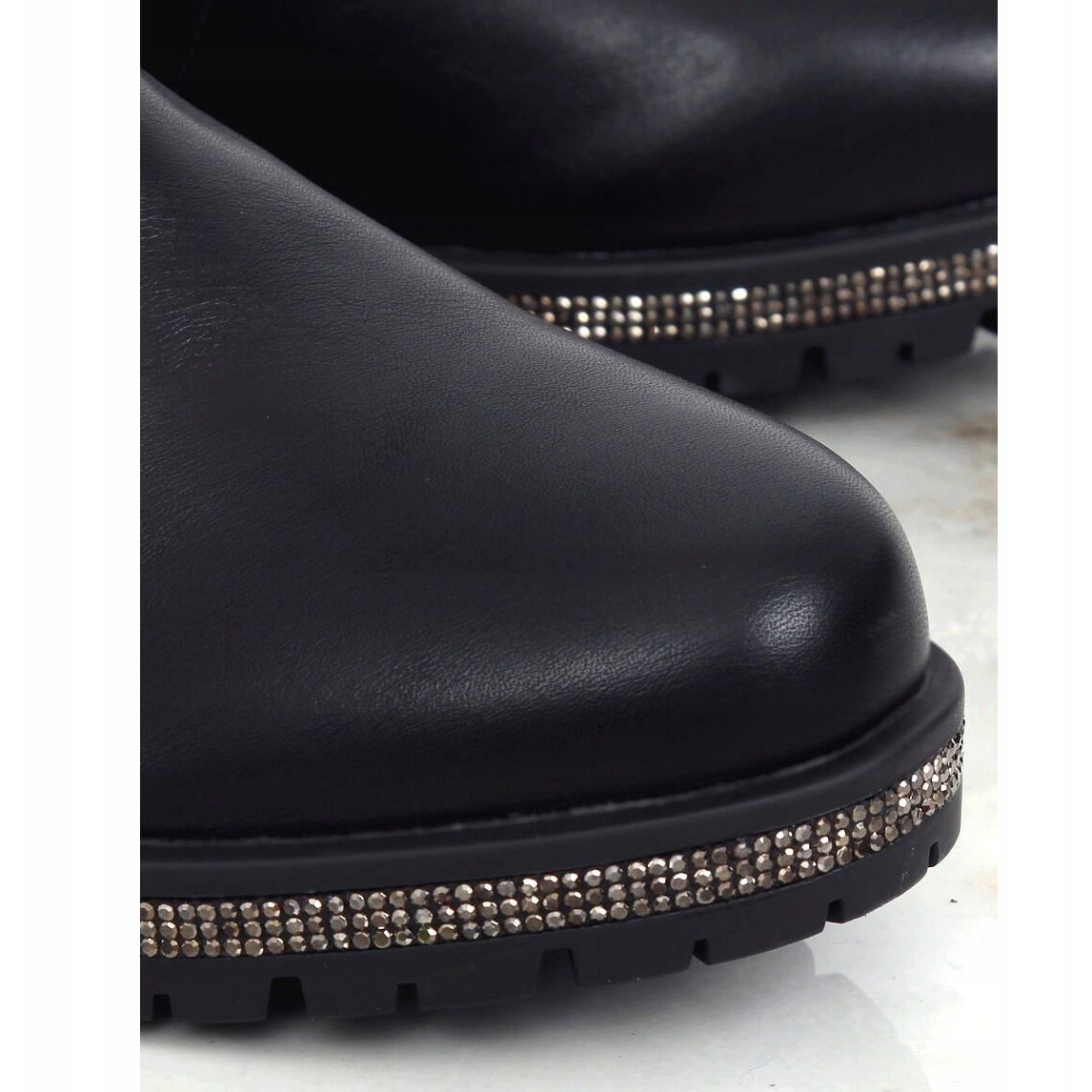 Nämä nilkkurit ovat täydellinen valinta naisille, jotka arvostavat modernin ja klassisen tyylin yhdistelmää. Koristeellisten strassien ja strassien ansiosta näiden kenkien jokainen askel on täynnä kiiltoa. Täydellinen jokapäiväiseen käyttöön, töihin tai tapaamisiin ystävien kanssa - SG-501 Black on välttämätön jokaisessa vaatekaappissa!