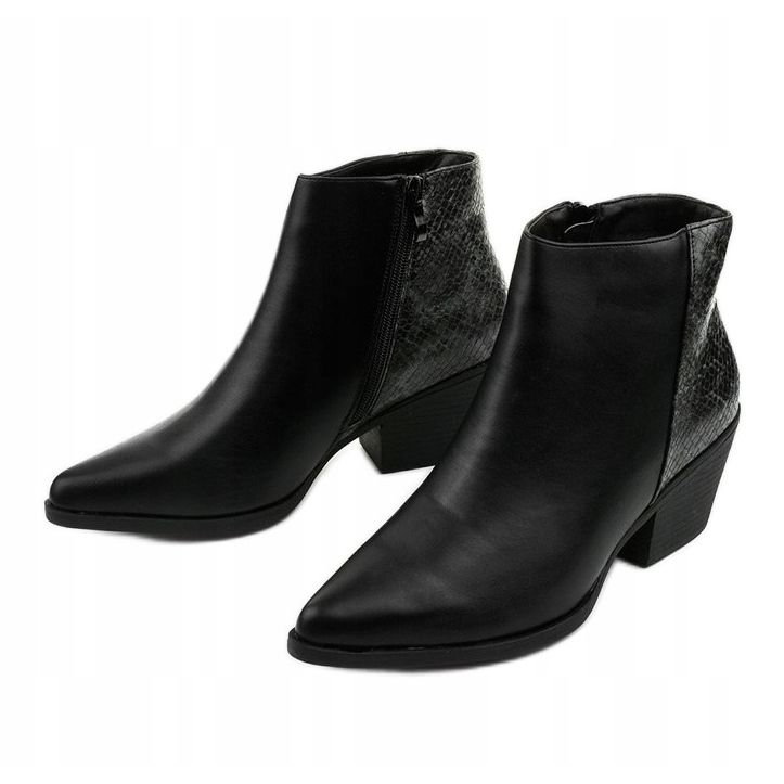 Näiden saappaiden erityinen etu on tyylikäs eko-nahkainen sisäosa, joka jäljittelee käärmeen ihoa ja lisää kenkiin ainutlaatuista luonnetta. Mustat cowboy-saappaat on asetettu herkälle Clozan muotoiselle kantapäälle, jonka korkeus on 6 cm, joten niitä voidaan käyttää mukavasti koko päivän. Lisäksi eristetty sisäpuoli tekee niistä täydelliset kylmempiin päiviin.