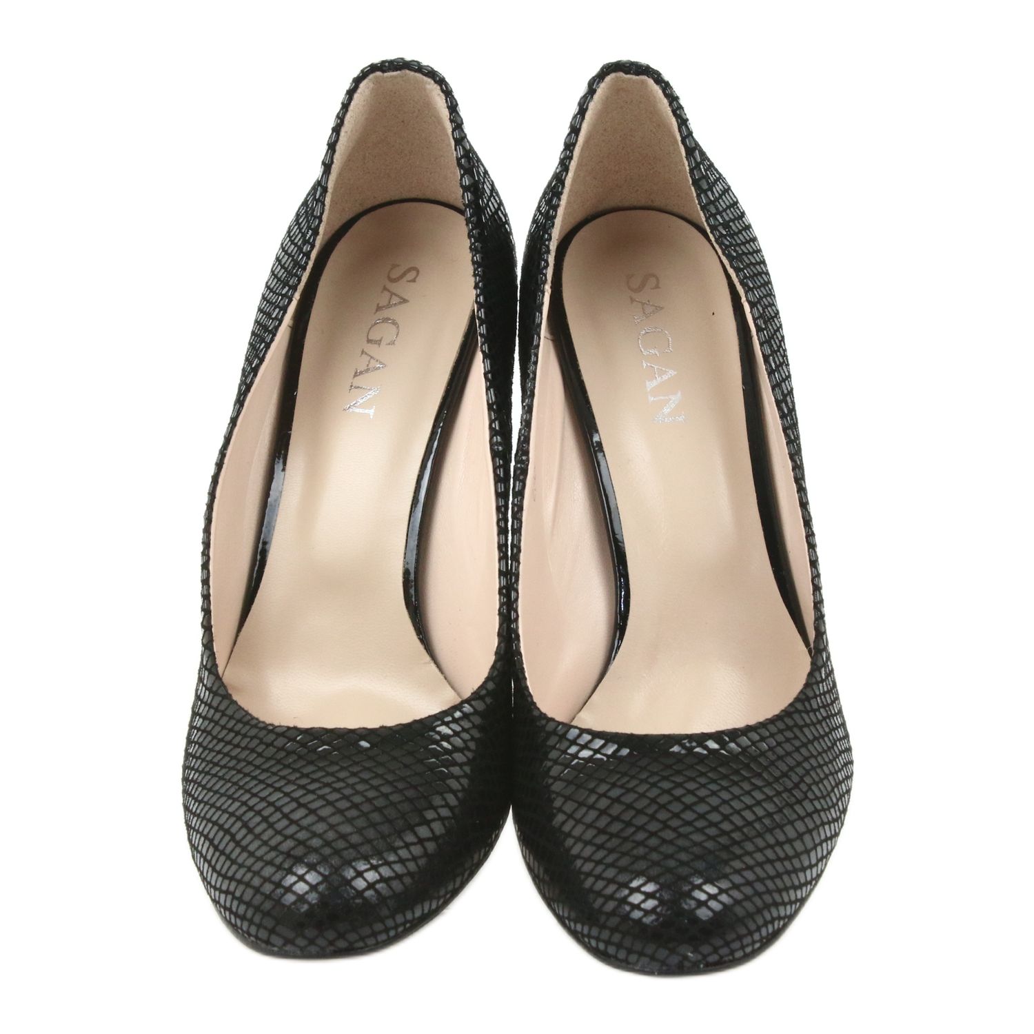 Sagan 2600 -pumput tyylikkäässä mustassa asteikossa ovat poikkeuksellinen tarjous naisille, jotka arvostavat tyyliä ja mukavuutta. Nämä kengät on valmistettu luonnollisesta, erityisesti kohokuvioidusta nahasta, ja niissä yhdistyvät avantgarde design ja klassiset ratkaisut, mikä tekee niistä täydelliset kaikkiin tilaisuuksiin - muodollisista kokouksista arkiretkiin.