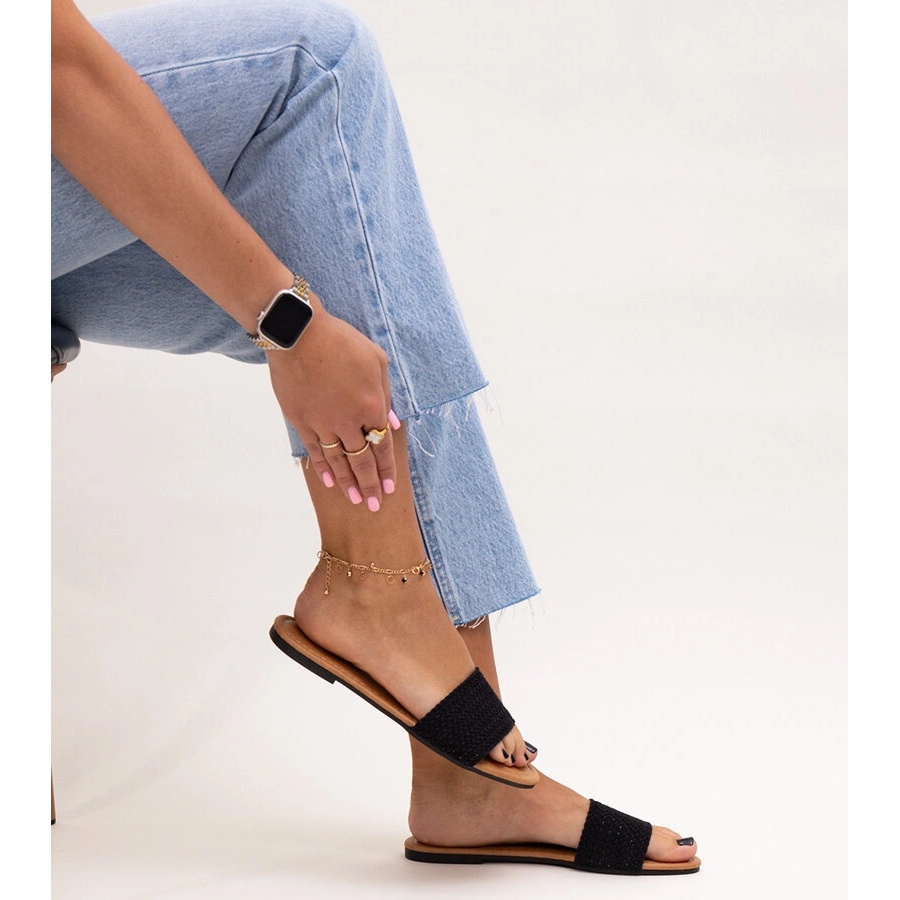 Musta brodeerattu Marika -flip -flops on loistava valinta jokaiselle naiselle, joka haluaa yhdistää tyylin mukavuuteen kesäpäivinä. Nämä liukastumiskehykset on suunniteltu maksimaalisen mukavuuden saavuttamiseksi, jonka ansiosta ne ovat täydellisiä kesäkävelyille tai lepäävät rannalla.