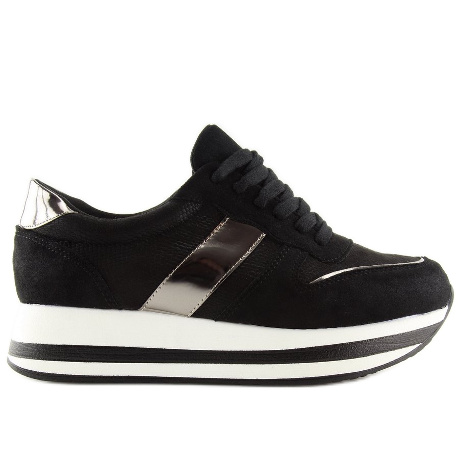 Mustat korkeapohjaiset kengät 99-11 Black ovat täydellinen valinta moderneille ja tyylikkäille naisille, jotka haluavat yhdistää mukavuuden muodikkaan ilmeen. Nämä superkevyet urheilukengät erottuvat metallisista lisäosista ja hienovaraisista kohokuvioista, jotka antavat niille tyylikkään luonteen. Muodikkaan korkean pohjan ansiosta, joka lisää 4 cm korkeutta, kaikki tyylit tulevat houkuttelevammiksi.