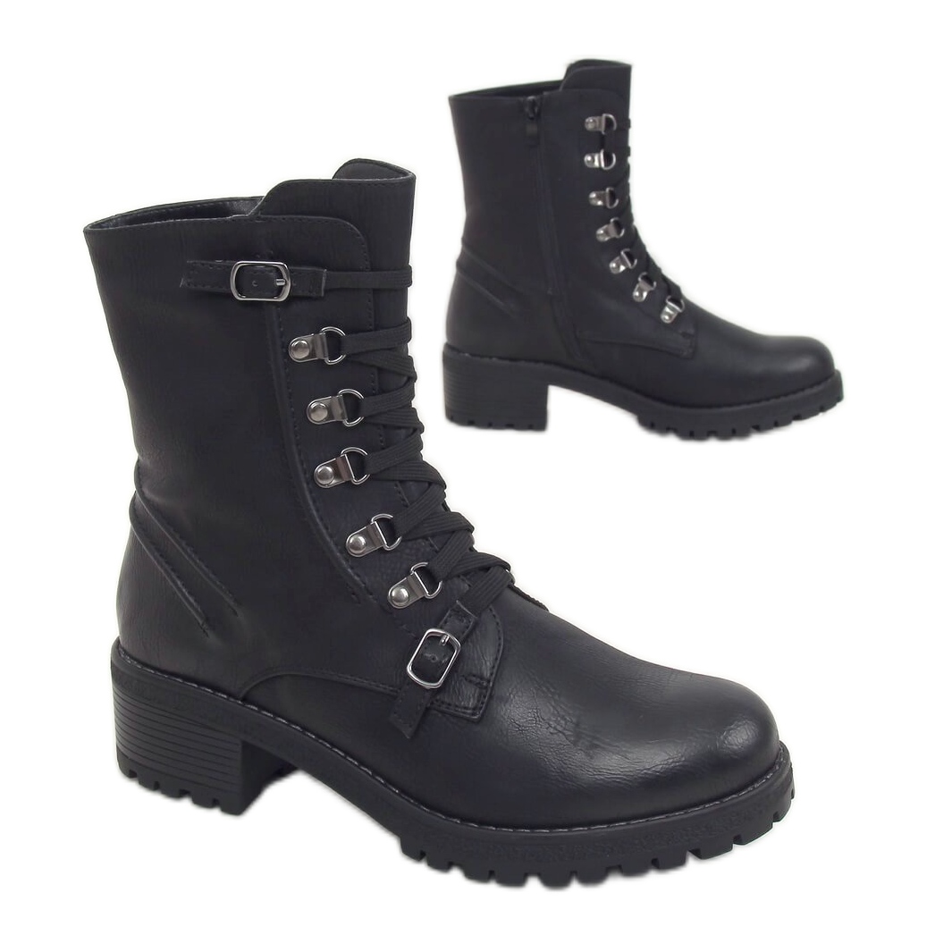 Löydä tyyliä ja mukavuutta 361 mustilla sotilaskengillä! Näissä eleganteissa naisten nilkkureissa yhdistyvät muodikas ulkonäkö ja käytännöllisyys, ja ne sopivat täydellisesti jokapäiväiseen käyttöön. Niille on ominaista leveä, 4,5 cm korkea kantapää ja trappered-pohja, joka ei vain lisää niihin modernistista korostusta, vaan myös varmistaa riittävän pidon eri pinnoilla.