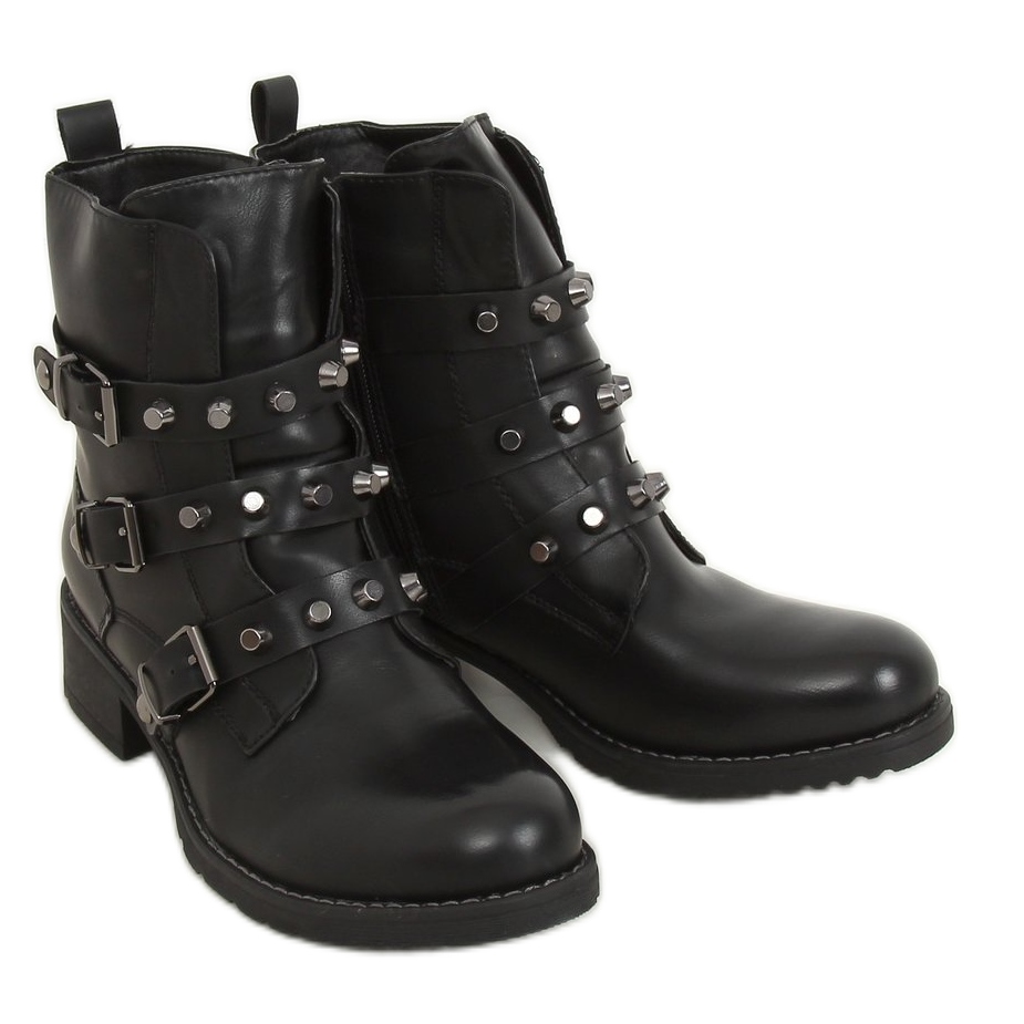 Musta ekologinen nahka, josta ne on valmistettu, on tae kestävyydestä ja mukavuudesta, ja kenkien sisäpuoli on vuorattu herkällä turkilla ja lisää käyttömukavuutta tehden niistä täydelliset myös kylminä päivinä. Lisäkoristeet strassikivillä ja nappeilla koristeltujen olkaiden muodossa antavat saappaille ainutlaatuisen luonteen, joten ne täydentävät täydellisesti rock-tyyliä.