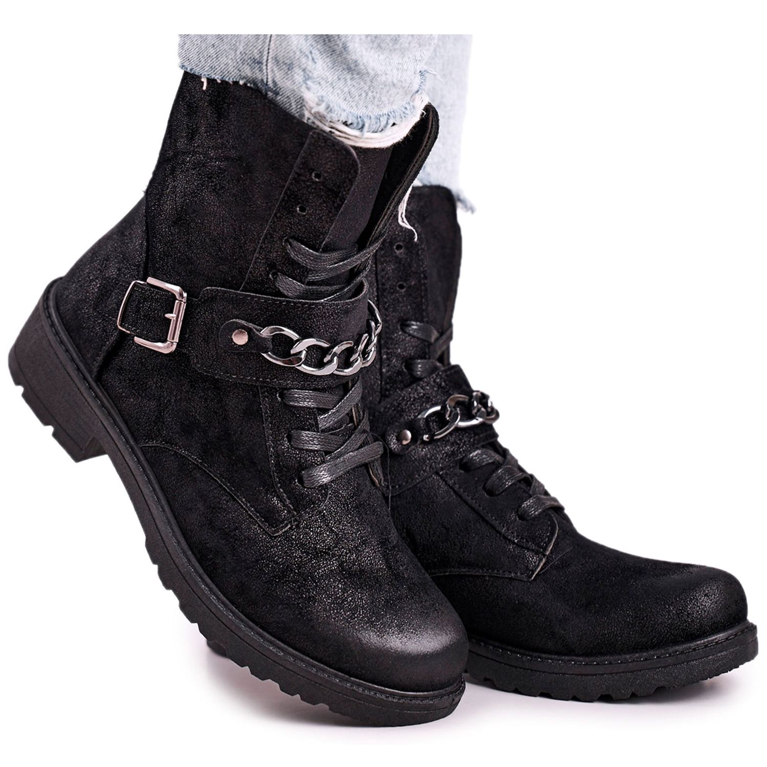 Inna marka Mustat Augusta Suede mustat työkengät ketjulla