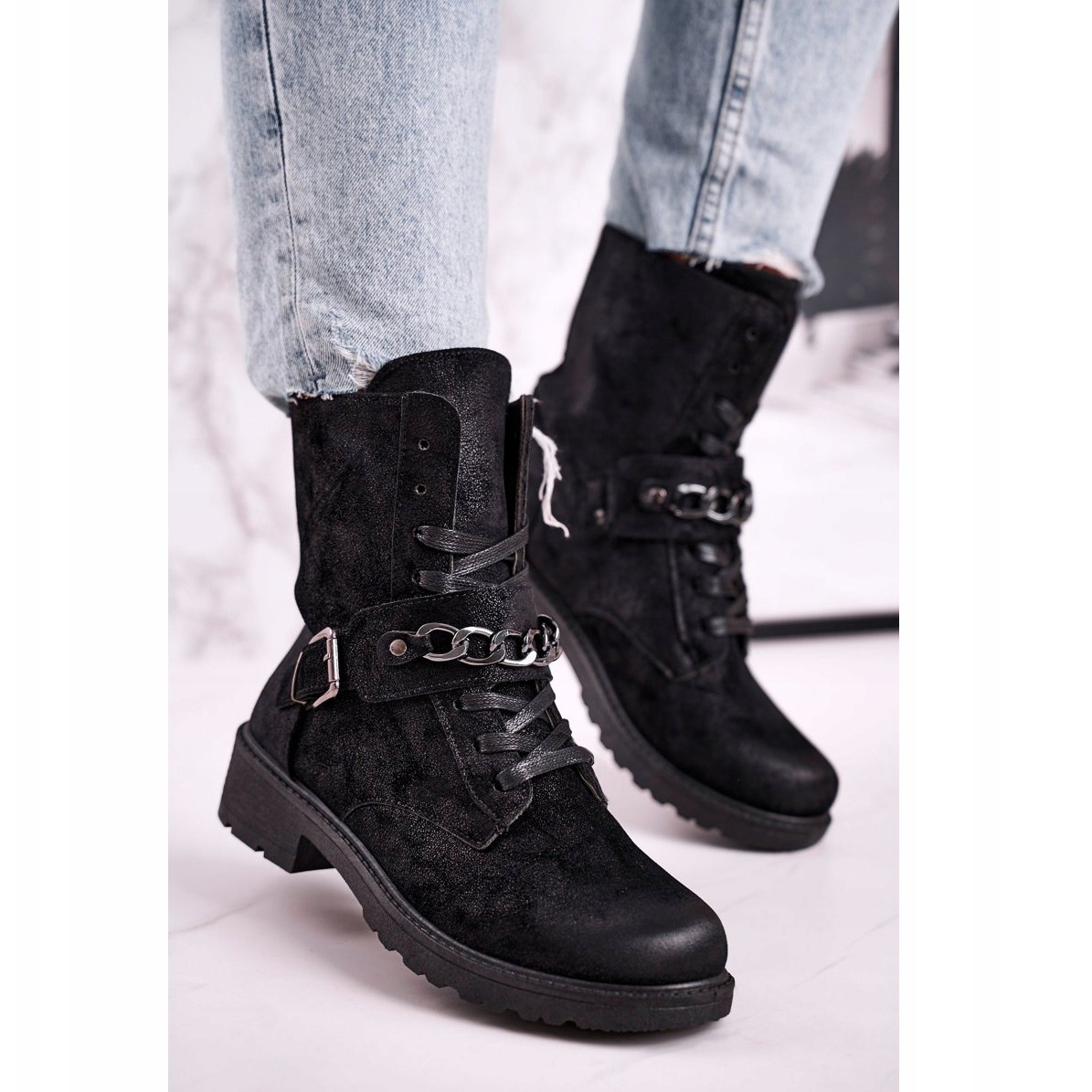 Musta Augusta Suede Worker Ankle Boots with Chain -nilkkurit ovat täydellinen valinta jokaiselle naiselle, joka haluaa lisätä hieman avantgardea ja tyyliä lookiinsa. Kokoa valittaessa kannattaa noudattaa tyypillistä numerointia ja kokotaulukkoa, jotta ne sopivat täydellisesti. Sijoita mukavuuteen ja tyyliin jo tänään!