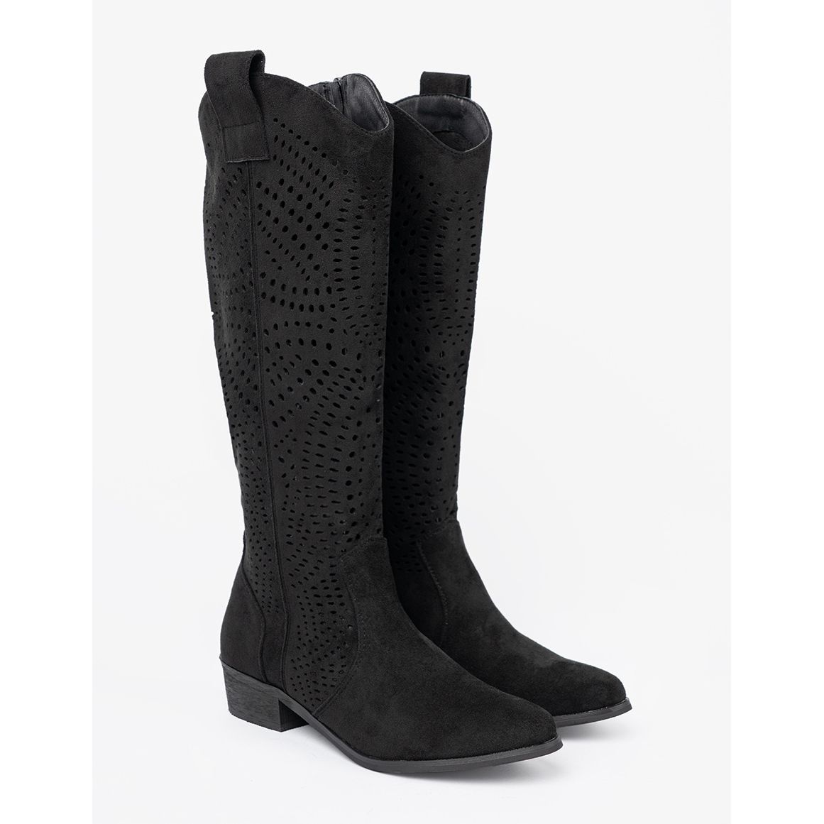 Ylä 36 cm leveä ja 39 cm korkeat sopeutuvat täydellisesti jalkaan, ja universaali musta väri saa sinut helposti yhdistämään eri vaatteiden kanssa. Tekstiilimateriaalista valmistettu sisustus tarjoaa lisäksi mukavuutta.