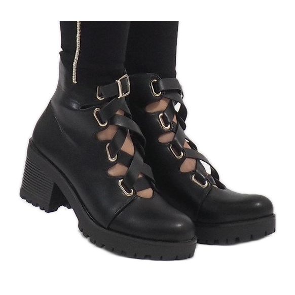 Nämä korkealaatuisesta ekologisesta nahasta valmistetut saappaat tarjoavat sinulle mukavuutta ja kestävyyttä pitkään. Pyöreä kärki ja solkikiinnitys antavat niille hienovaraisen viehätyksen, ja nilkan korkeus (18 cm) tekee niistä täydelliset kaikkiin vuodenaikoihin. Mustat korkeakorkoiset nilkkurit, joiden korkeus on 7 cm, lohkokorkoinen, takaavat vakauden ja käyttömukavuuden myös pitkään.