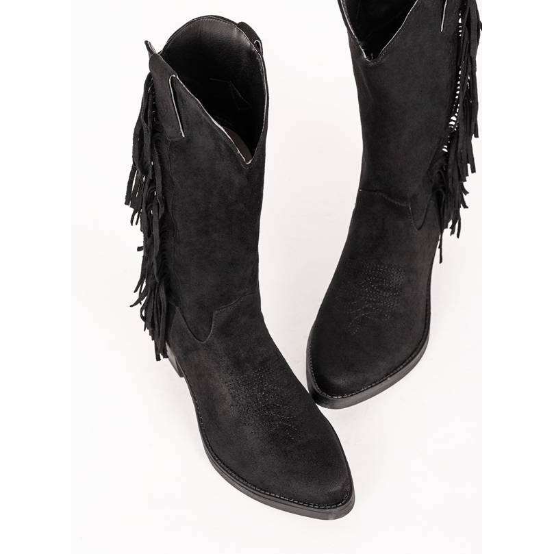Mustat korkeat Bianca cowboysaappaat eivät ole vain jalkineita, ne ovat todellinen tyylimanifesti, jossa yhdistyvät boho- ja country-elementit. Nämä naisten saappaat ovat täydellinen ehdotus syys-talvikaudelle ja sopivat täydellisesti erilaisiin muotitrendeihin. Ekologisesta mokkanahkasta valmistetut ne näyttävät tyylikkäiltä ja kiehtovat hieman eristetyllä rakenteella, joka takaa mukavuuden myös kylmimpinä päivinä.
