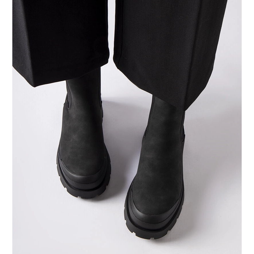 Tyylikkät, ajattomat saappaat, jotka on asetettu Big Starista, ovat ehdotus, jossa yhdistyvät yksinkertainen, muodikas leikkaus jokapäiväiseen mukavuuteen. Sileä, musta ekologinen nahka ja pyöreä nenä antavat heille hienovaraisen tyylikkyyden, jonka ansiosta ne vastaavat sekä rentoja että tyylikkäimpiä tyyliä.
