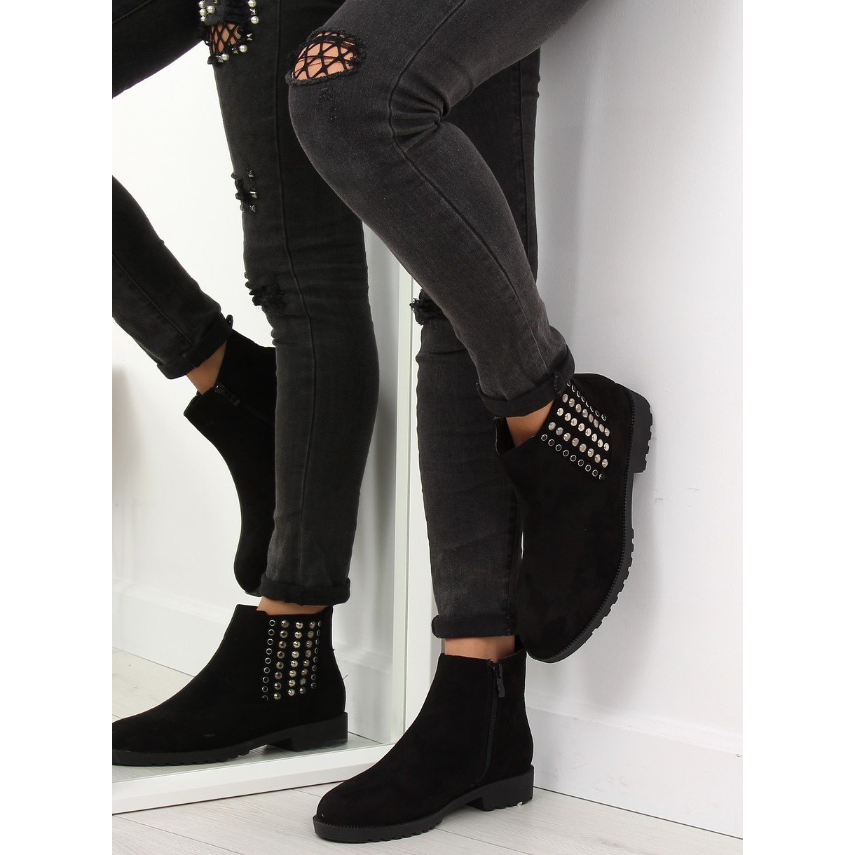 Löydä ainutlaatuinen tyyli ja mukavuus naisten Chelsea-saappaat 108-107 Black! Nämä tyylikkäät nilkkurit, joissa on trapetsipohja, ovat täydellinen valinta naisille, jotka haluavat yhdistää muodikkaan muotoilun arjen mukavuuteen. Musta mokkanahka viimeistely, jota täydennetään kiiltävillä kivillä sivuilla, tekee näistä kengistä erottuvan muista.