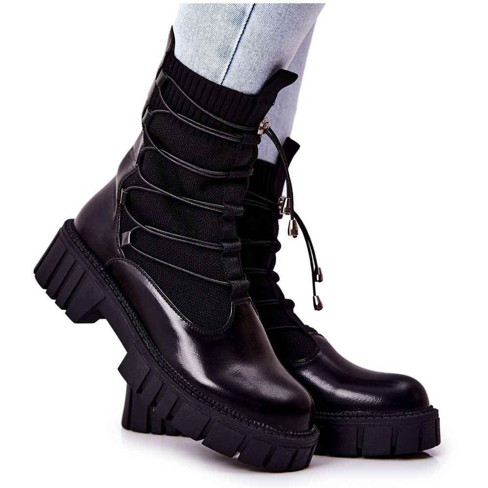 PL4 PL4 Mustat Connor Workers -saappaat, joissa on sukka