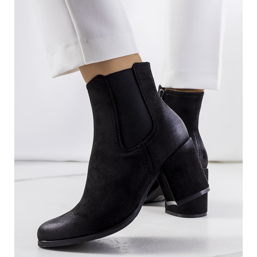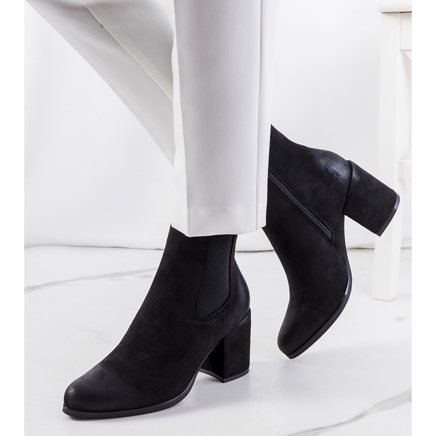 Klassinen, naisellinen saappa Kiinnitetty vetoketjulla sisäpuolelta, upotettuna vakaan, keskisuureen pylvääseen (kantapään korkeus: 7 cm). Hieman eristetty sisällä, täydellinen viileämpiin päiviin. Vakionumerointi - Valitse tavallinen koko.