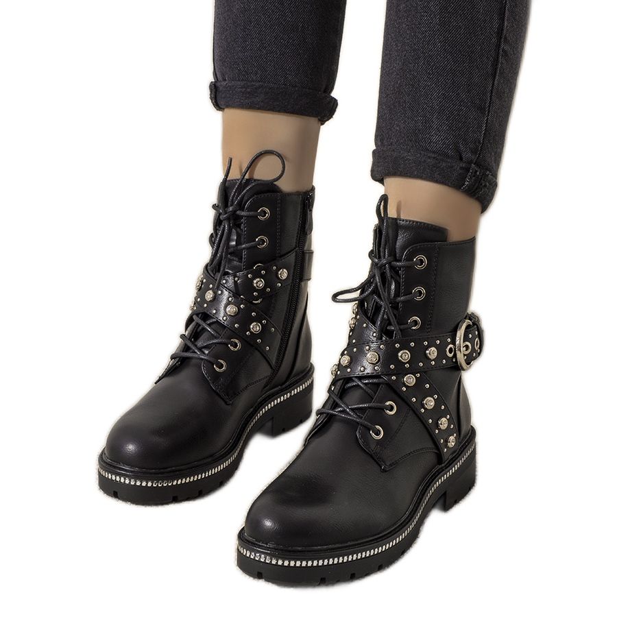 Joann-mallia on saatavana klassisessa mustassa värissä, mikä tekee siitä sopivan moneen eri tyyliin. Vetoketjun, soljen ja nauhoitusten muodossa olevat kiinnitykset yhdistävät toimivuuden muodikkaan ilmeen. Lisäelementit, kuten strassit ja strassit, lisäävät kokonaisuuteen eksklusiivisuutta.